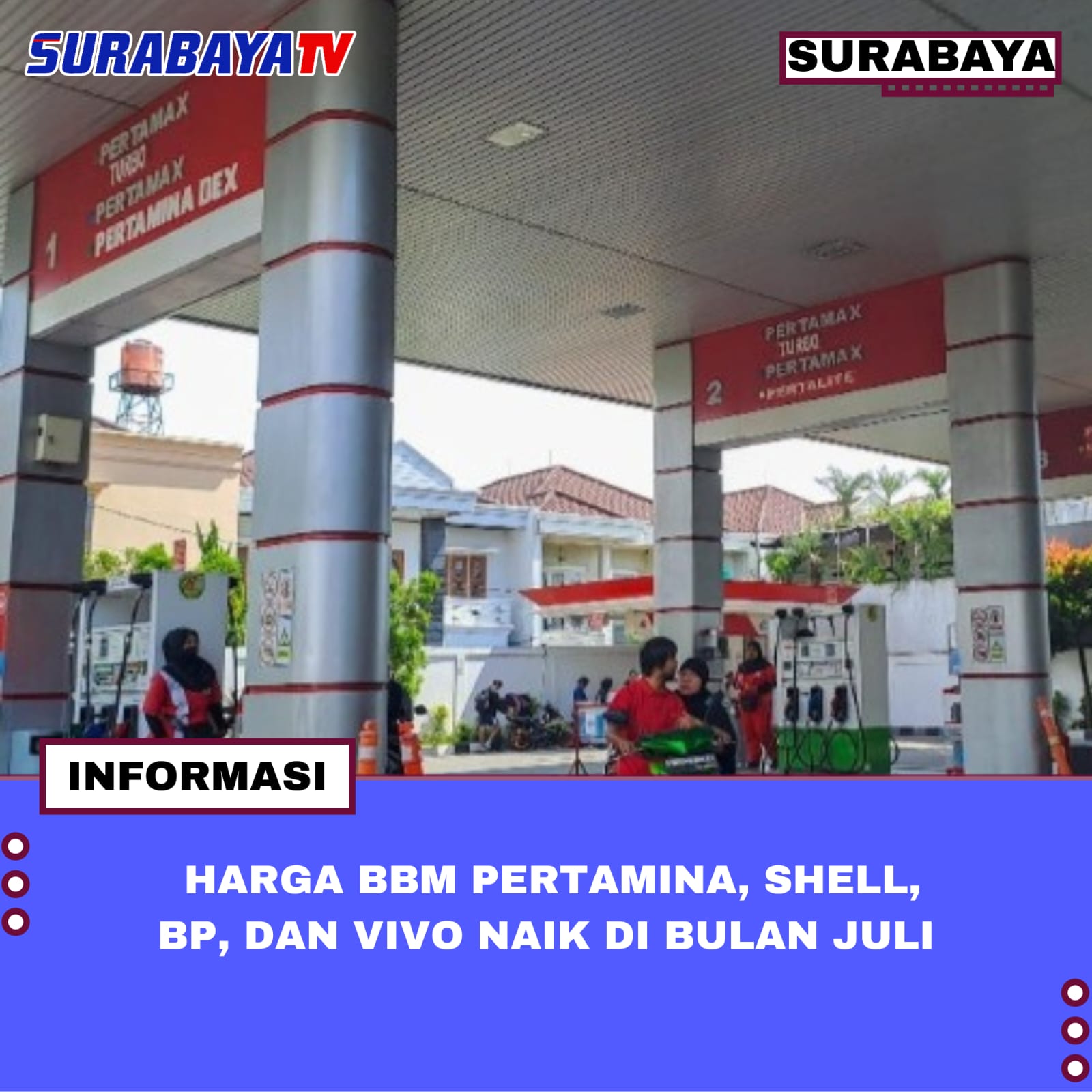Surabaya – Harga Bahan Bakar Minyak (BBM) di SPBU, Shell, Vivo, dan BP terpantau naik di awal bulan Juli akibat fluktuasi harga minyak dunia yang dipengaruhi oleh konflik Timur Tengah.
