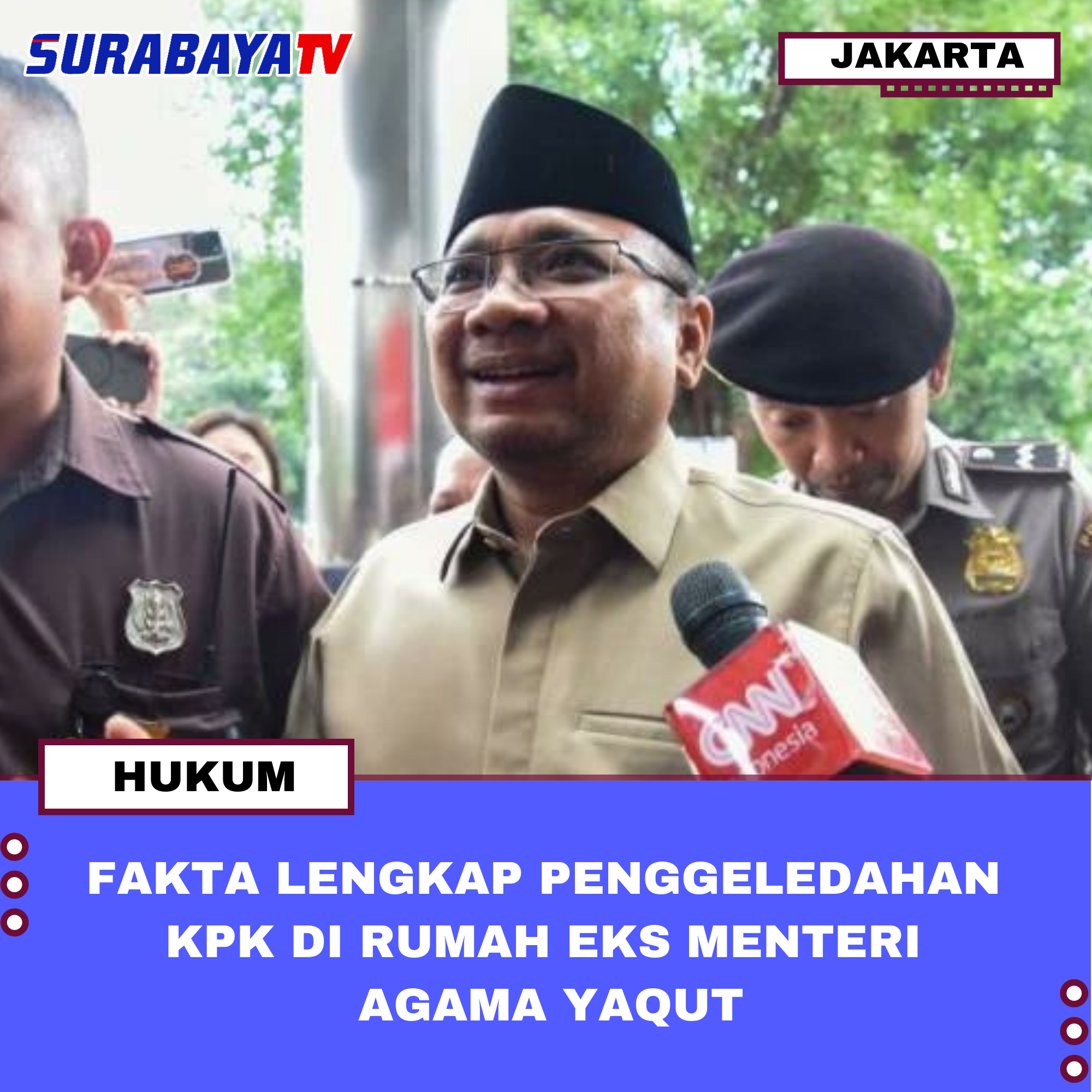 JAKARTA – Komisi Pemberantasan Korupsi (KPK) menggeledah rumah mantan Menteri Agama (Menag) Yaqut Cholil Qoumas (YCQ) pada Jumat (15/8/2025). Penggeledahan dilakukan terkait dugaan korupsi dalam penentuan kuota tambahan dan penyelenggaraan ibadah haji di Kementerian Agama (Kemenag) pada tahun 2023–2024.Juru bicara KPK, Budi Prasetyo, mengonfirmasi penggeledahan di rumah Yaqut di Jakarta Timur. Mantan Menag itu disebut kooperatif saat proses berlangsung. Selain di rumah Yaqut, KPK juga melakukan penggeledahan di rumah seorang aparatur sipil negara (ASN) Kemenag di Depok, Jawa Barat.Budi menyebut penggeledahan dilakukan untuk mencari bukti tambahan sekaligus mengoptimalkan pemulihan kerugian keuangan negara. Dari rumah Yaqut, penyidik menyita sejumlah dokumen dan barang bukti elektronik, termasuk telepon genggam, yang akan diekstraksi untuk memperkuat penyelidikan. Sementara dari rumah ASN Kemenag di Depok, KPK menyita sebuah mobil Kijang Innova Zenix yang kini telah diamankan di kompleks KPK.