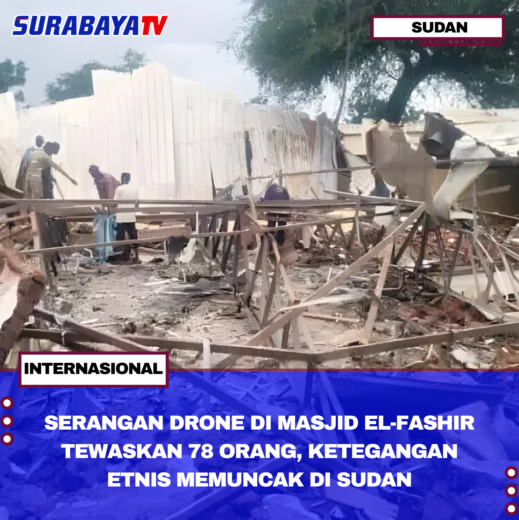 Sudan – Serangan drone pasukan paramiliter Rapid Support Forces (RSF) di masjid Kota Al Fashir, Sudan, tewaskan 78 orang dan luka 20 lainnya. Serangan terjadi saat Salat Subuh, banyak korban langsung meninggal dan terjebak reruntuhan bangunan kayu masjid yang terbakar. RSF dan militer Sudan sudah terlibat perang saudara brutal lebih dua tahun, dengan RSF kini berupaya menguasai El-Fashir, yang dihuni lebih 300 ribu warga sipil.