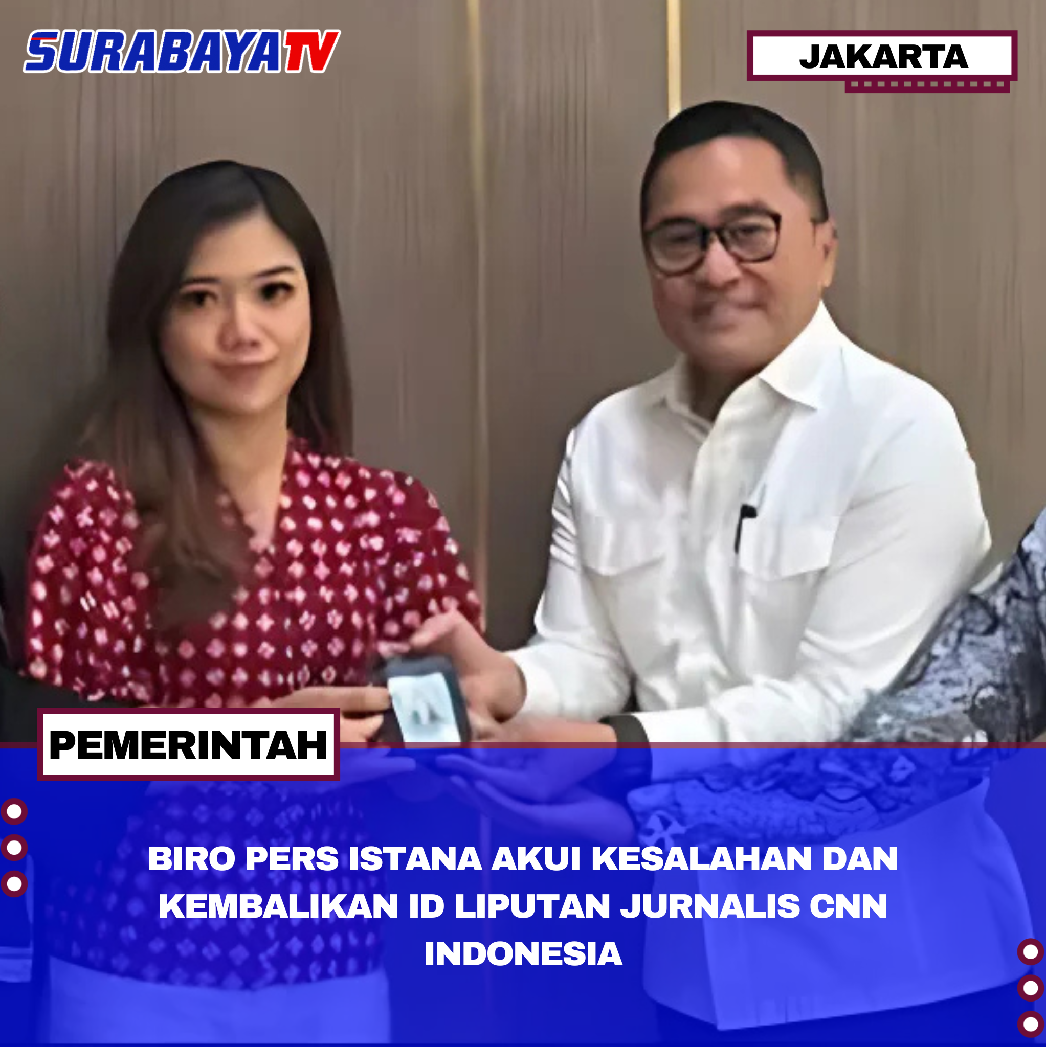 Jakarta – Biro Pers, Media, dan Informasi (BPMI) Sekretariat Presiden menyesal telah mencabut kartu identitas liputan Istana milik jurnalis CNN Indonesia, Diana Valencia, setelah kejadian itu terjadi pada 27 September 2025 di Pangkalan Udara Halim Perdanakusuma saat Diana mewawancarai Presiden tentang program Makan Bergizi Gratis (MBG). Pada 29 September 2025, BPMI mengembalikan kartu ID tersebut dan menyampaikan permohonan maaf resmi kepada Diana dan CNN Indonesia.