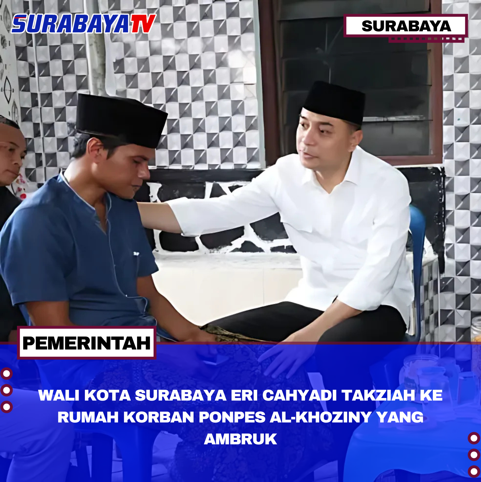 Surabaya – Eri Cahyadi, Wali Kota Surabaya, melakukan takziah ke rumah duka almarhum Maulana Alfan Ibrahimavic, santri Ponpes Al-Khoziny yang meninggal akibat bangunan ambruk, pada 1 Oktober 2025 di Surabaya. Ia meminta warga mendoakan almarhum dan keluarga agar diberi ketabahan dan kekuatan.