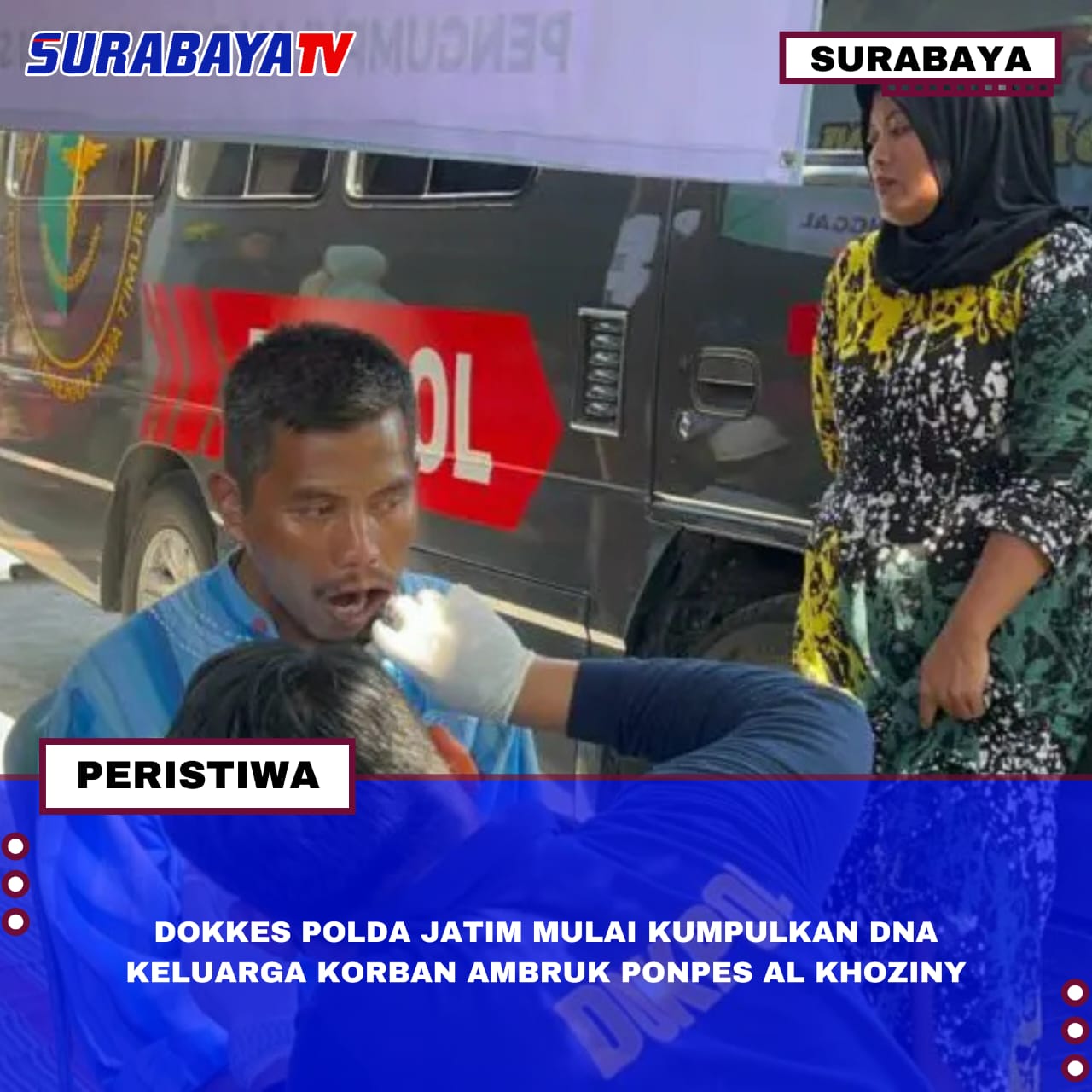 Surabaya – Bidang Dokkes Polda Jatim mulai mengumpulkan sampel DNA dari keluarga korban yang belum ditemukan di reruntuhan Pondok Pesantren Al Khoziny, Sidoarjo, sejak Kamis (2/10). Kombes Pol. M. Khusnan, Kabid Dokkes Polda Jatim, menyatakan, “Kami mulai kumpulkan DNA dari keluarga dekat yang melaporkan ke posko Ante Mortem Polda Jatim“.