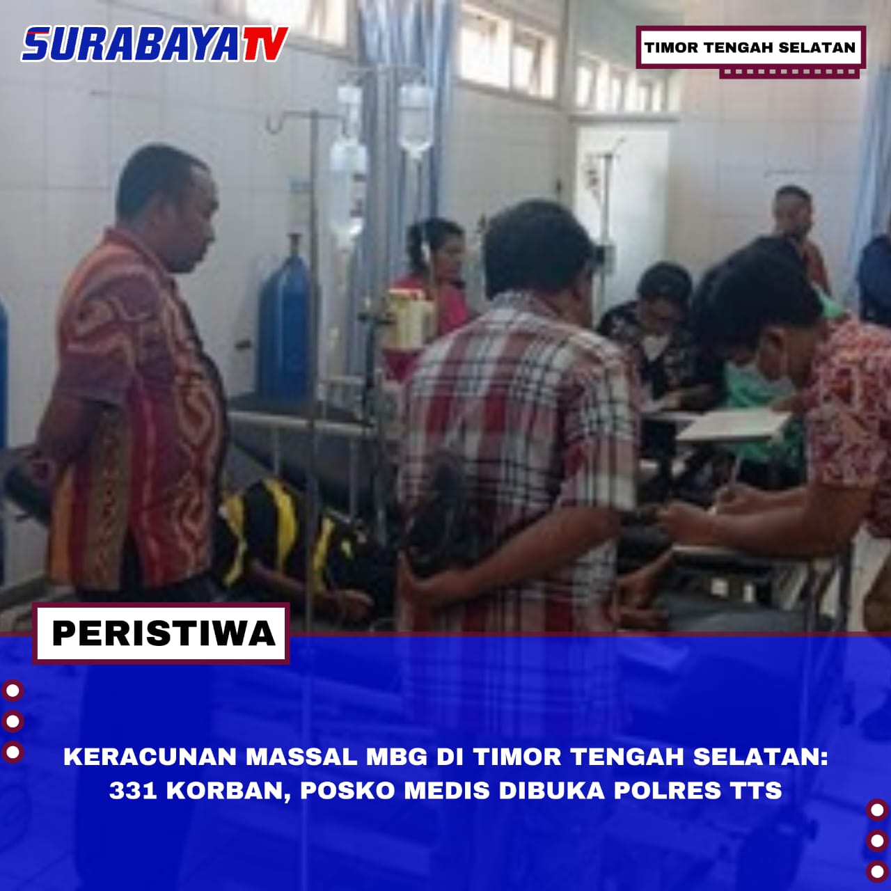 Kupang – Korban dugaan keracunan massal setelah menyantap makanan bergizi gratis (MBG) di Timor Tengah Selatan, NTT, meningkat drastis menjadi 331 orang per Jumat malam. Polres TTS membuka posko layanan medis untuk membantu penanganan korban, dengan Kapolres AKBP Hendra Dorizen mengatakan, “kami bantu membuka posko Kejadian Luar Biasa (KLB) untuk menangani para korban.”