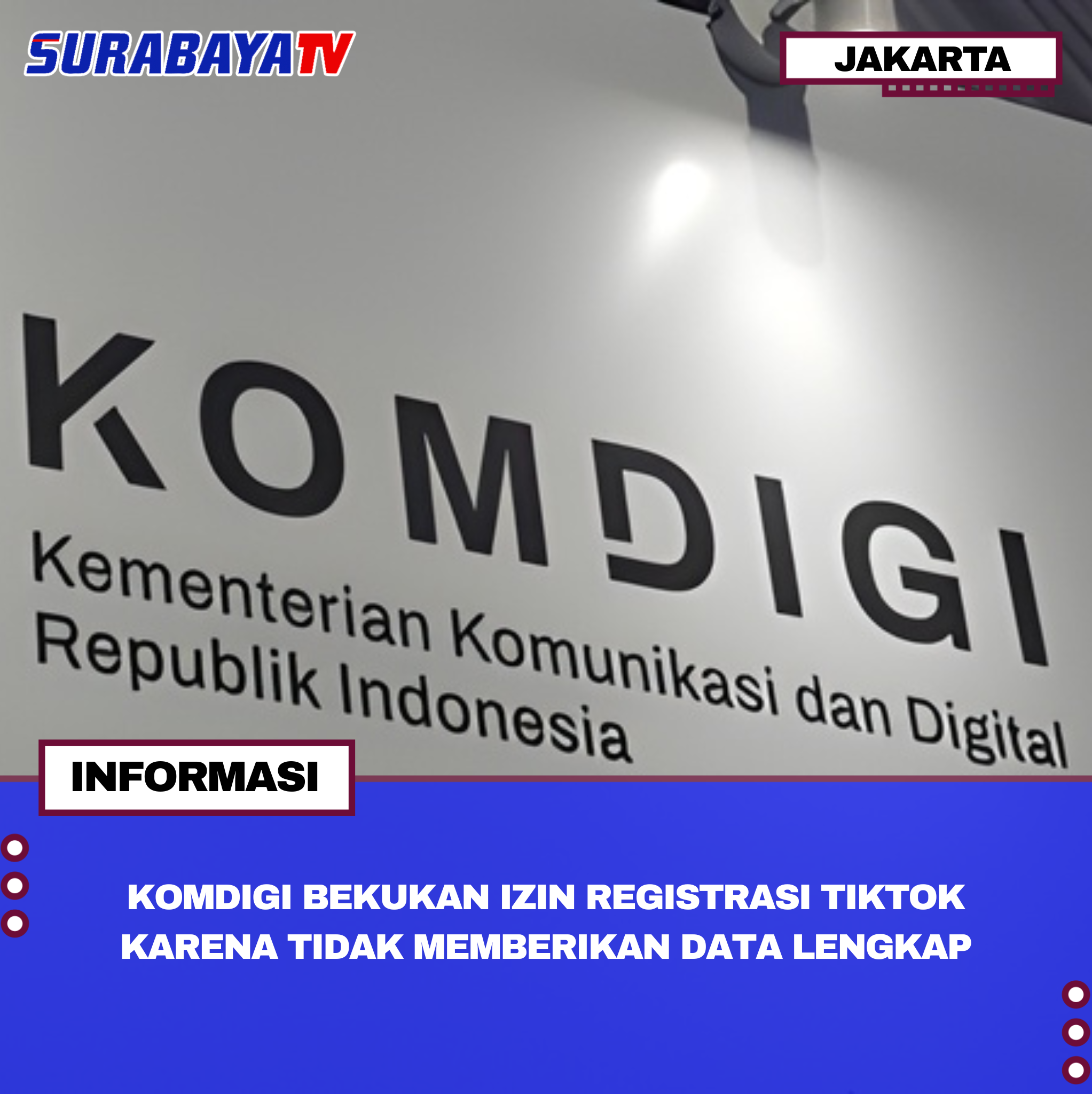 Jakarta -Kementerian Komunikasi dan Digital (Komdigi) membekukan sementara Tanda Daftar Penyelenggara Sistem Elektronik (TDPSE) TikTok Pte. Ltd pada awal Oktober 2025. Pembekuan ini terjadi karena TikTok hanya memberikan sebagian data terkait aktivitas monetisasi live yang diduga berhubungan dengan judi online saat demo Agustus lalu. Komdigi meminta data lengkap mulai dari lalu lintas, aktivitas siaran langsung, hingga data monetisasi dari TikTok, namun respons platform ini dianggap tidak memadai.