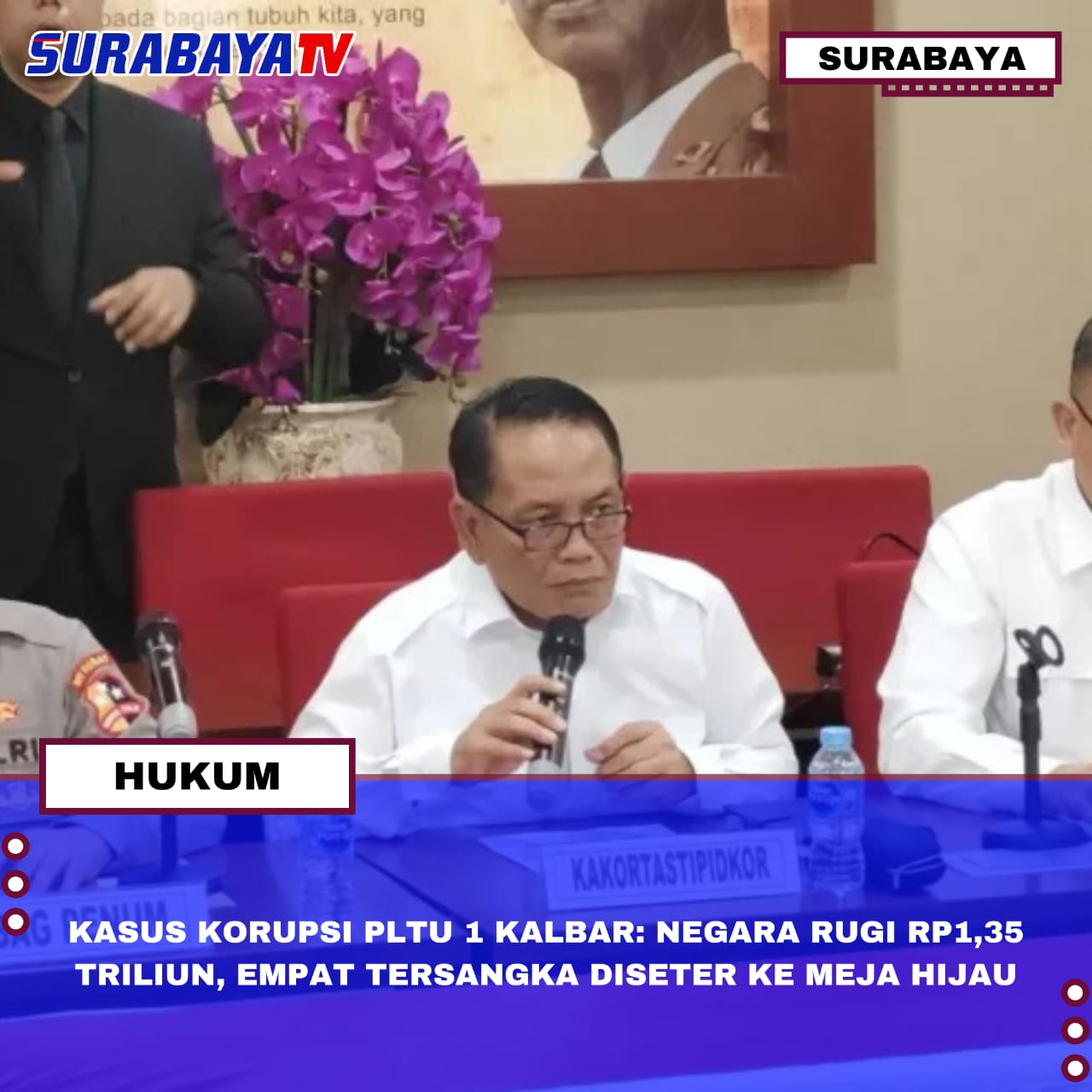 Surabaya – Kasus korupsi proyek PLTU 1 Kalbar merugikan negara sebesar Rp1,35 triliun, kata Irjen Pol. Cahyono Wibowo. Kerugian itu termasuk 62,4 juta dolar AS dan Rp323 miliar, karena proyek tidak selesai dan mengalami total loss. “Karena output-nya tidak berhasil maka dalam konteks kerugian keuangan negara ini adalah total loss,” jelasnya.