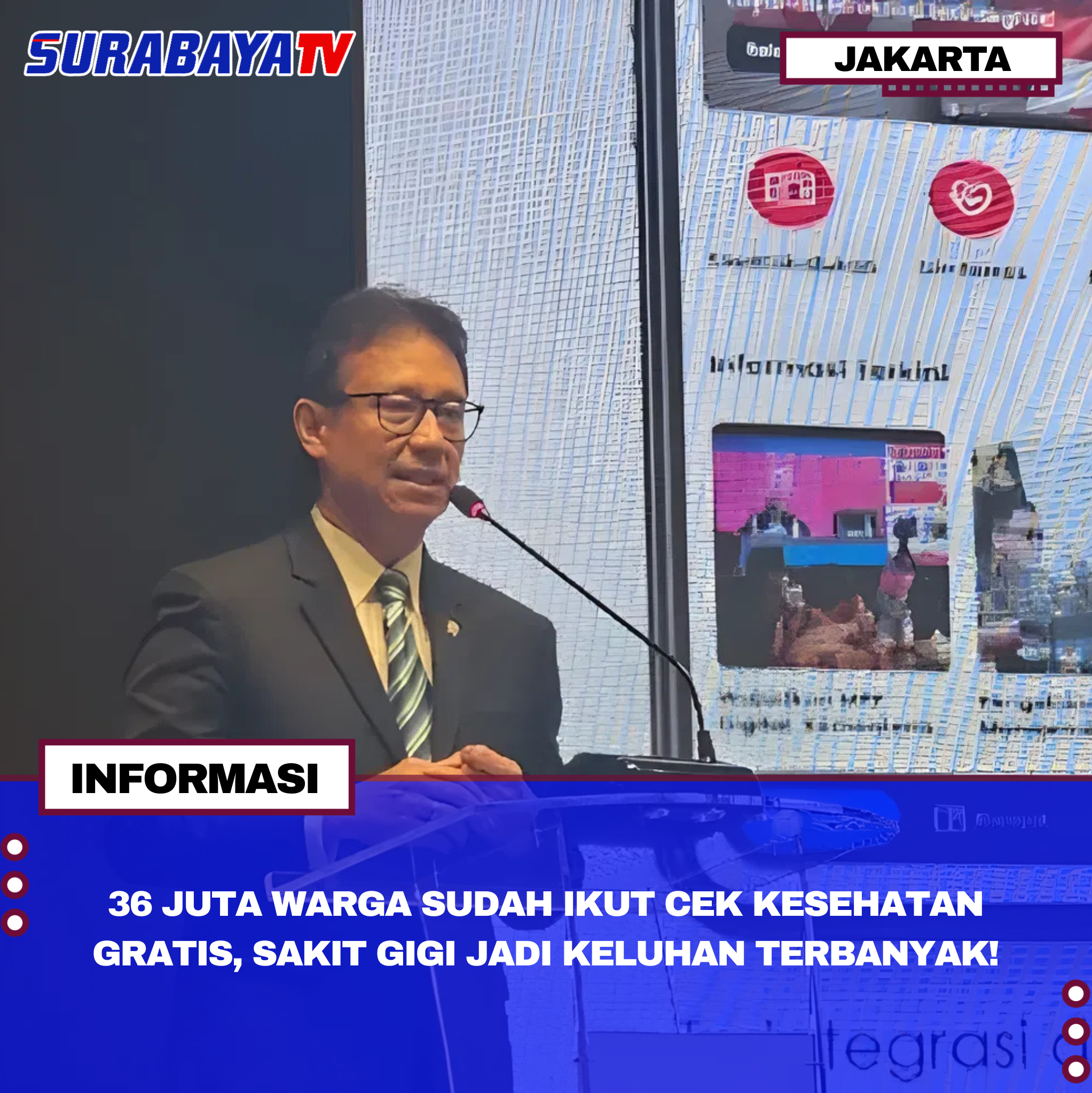 Jakarta – Menteri Kesehatan Budi Gunadi Sadikin menyebutkan dari 40 juta pendaftar program Cek Kesehatan Gratis, 36 juta orang sudah menjalani pemeriksaan hingga Oktober 2025. Keluhan terbanyak yang ditemukan adalah sakit gigi, diikuti tekanan darah tinggi dan gula darah tinggi. Program ini digelar di berbagai wilayah Indonesia dengan tujuan mendeteksi penyakit sejak dini agar tidak berkembang menjadi kondisi serius.