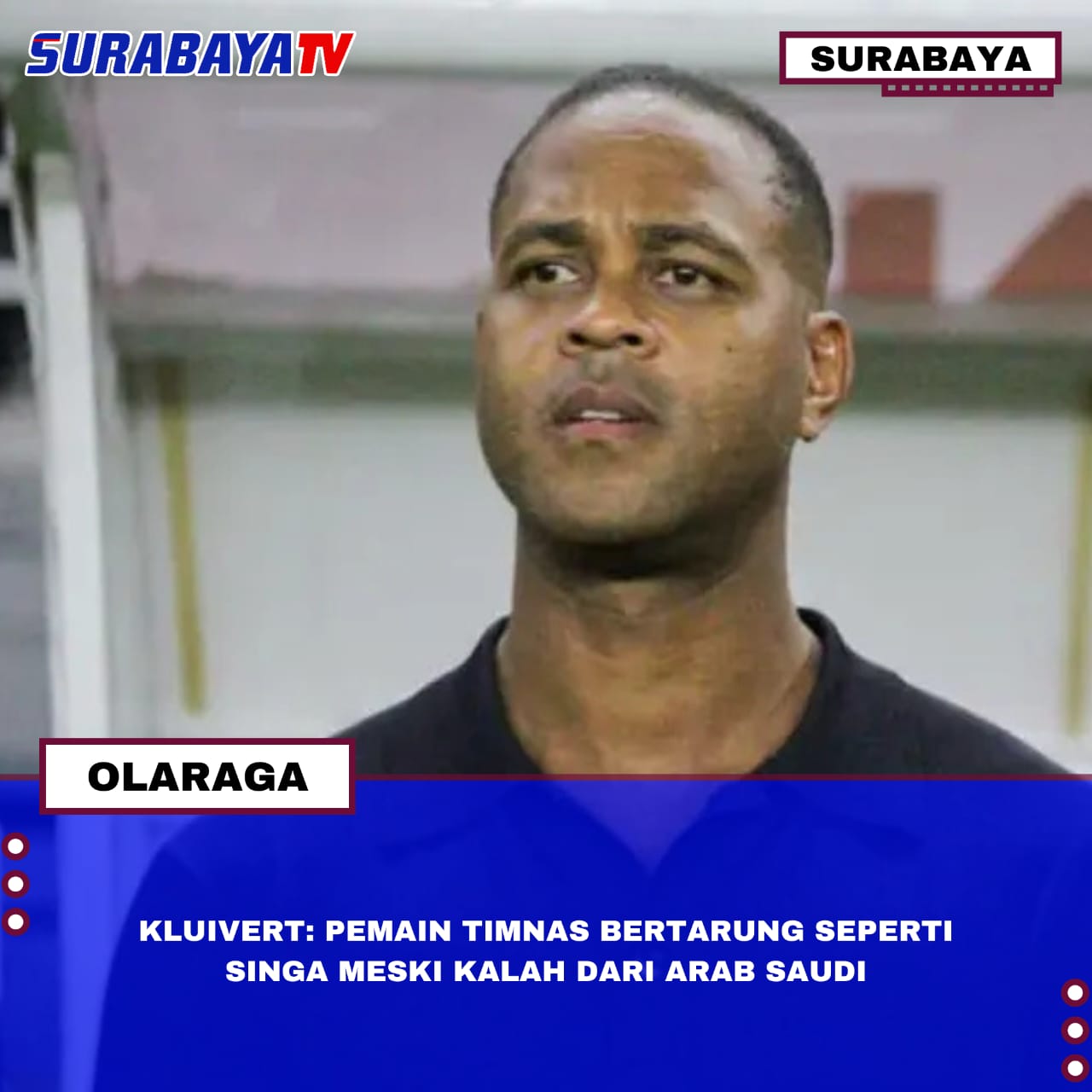Surabaya – Pelatih Timnas Indonesia, Patrick Kluivert, memuji perjuangan para pemainnya yang “bertarung seperti singa” meski kalah 2-3 dari Arab Saudi di Kualifikasi Piala Dunia 2026. Ia mengakui kekalahan itu mengecewakan, tapi bangga dengan usaha timnya yang memulai pertandingan cukup baik sebelum kehilangan momentum setelah gol penalti.