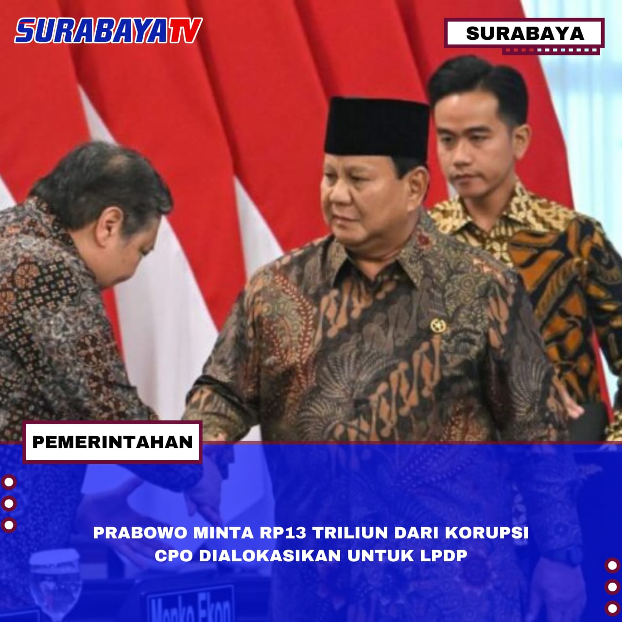 Surabaya – Presiden Prabowo Subianto meminta Menteri Keuangan Purbaya Yudhi Sadewa mengalokasikan sebagian hasil pengembalian uang korupsi ekspor CPO sebesar Rp13 triliun untuk memperkuat dana abadi pendidikan yang dikelola LPDP. Prabowo menyatakan, “Mungkin sebagian bisa kita taruh di LPDP untuk masa depan ya,” saat Sidang Kabinet Paripurna di Istana Negara, Jakarta. Pemerintah juga berencana menambah dana LPDP dari efisiensi anggaran dan hasil penindakan kasus korupsi lainnya.