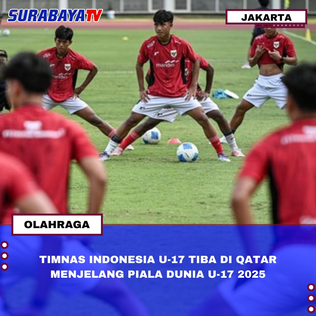 Jakarta – Skuad Timnas Indonesia U-17 tiba di Doha, Qatar pada Jumat (31/10) untuk mengikuti Piala Dunia U-17 yang akan berlangsung pada 3-27 November 2025. Kedatangan mereka disambut meriah oleh Duta Besar Indonesia untuk Qatar, Ridwan Hassan, staf Kedutaan Besar Republik Indonesia, serta puluhan suporter dari komunitas Garuda Timur Tengah dan Garuda Qatar.