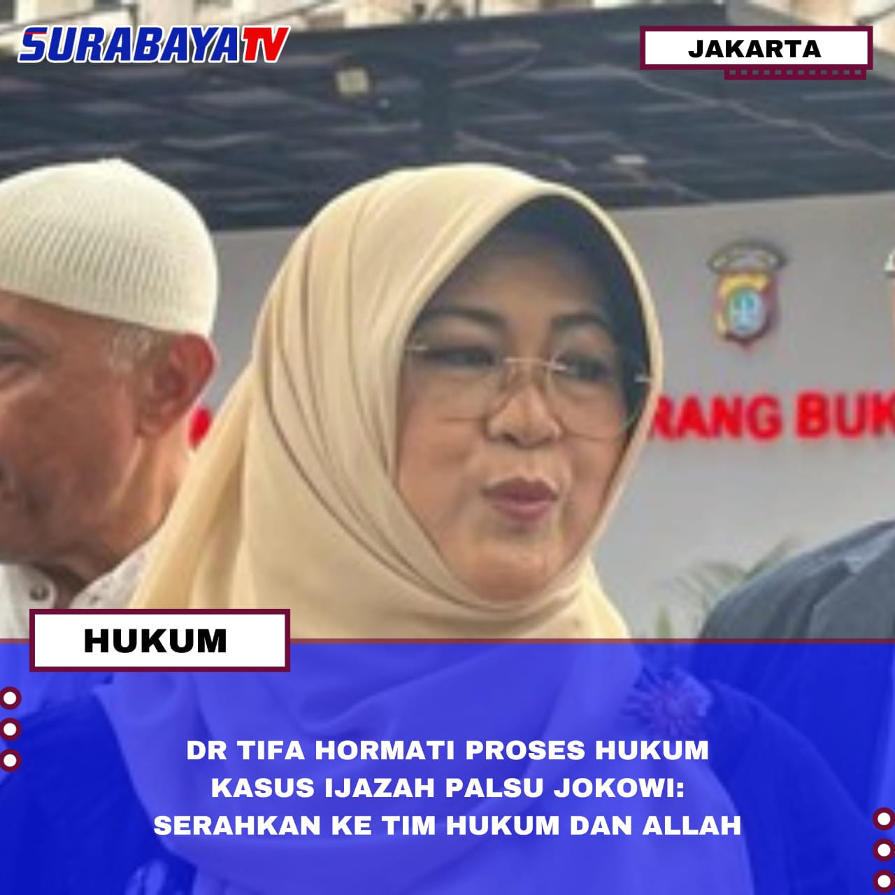 Jakarta – Dr Tifa, salah satu dari delapan tersangka dalam kasus tudingan ijazah palsu Presiden Jokowi, menyatakan menghormati proses hukum yang sedang berjalan. Ia menyerahkan sepenuhnya penanganannya kepada tim kuasa hukumnya. “Saya menghargai dan menghormati proses hukum. Dengan cara ini proses akan berlangsung terang benderang. Di mana kebenaran harus berpijak. Untuk proses ini, saya menyerahkan sepenuhnya kepada tim kuasa hukum saya,” ujar Tifa pada Jumat (7/11).