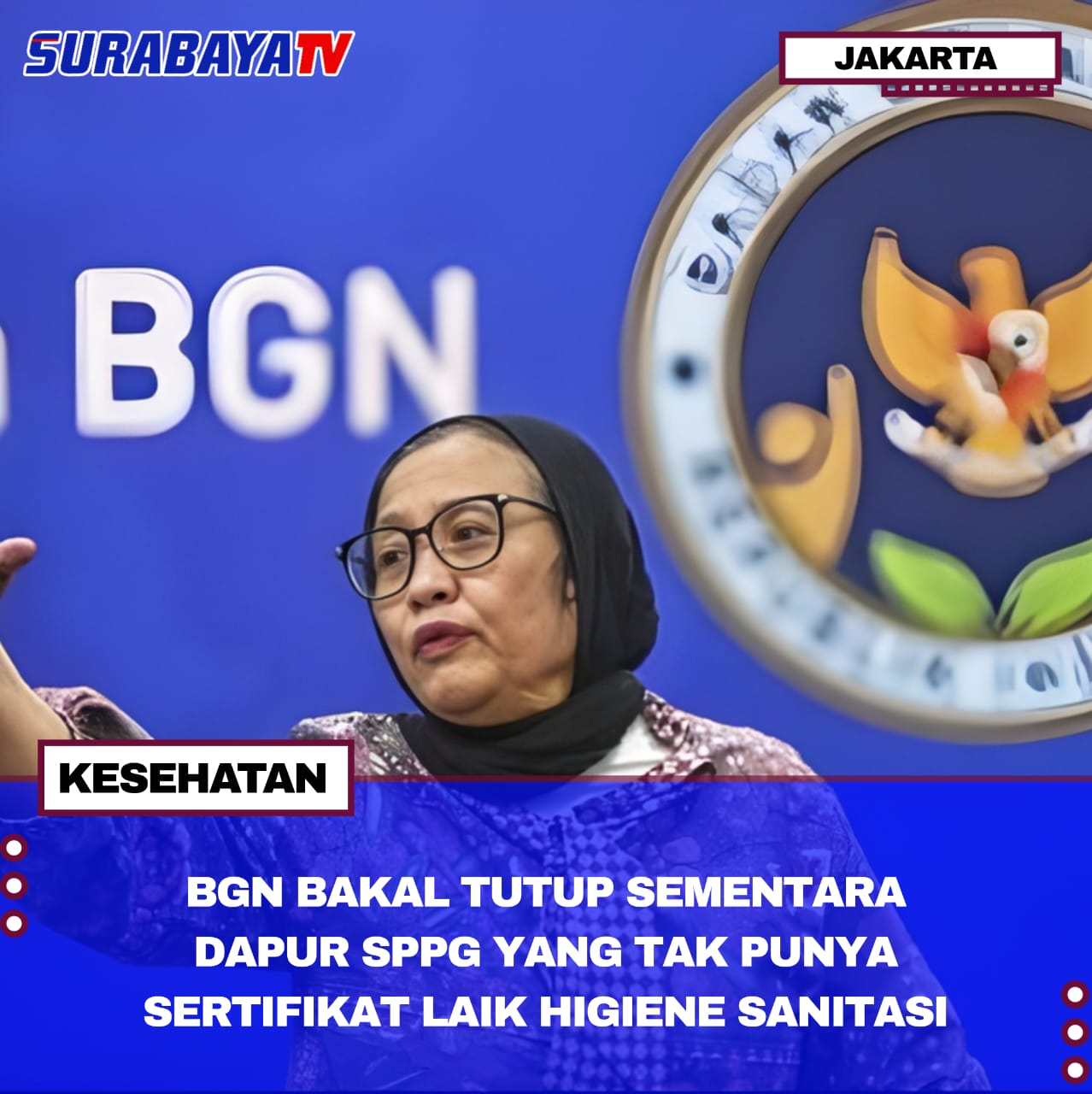Jakarta – Badan Gizi Nasional (BGN) memberikan waktu 30 hari kepada seluruh Satuan Pelayanan Pemenuhan Gizi (SPPG) untuk mendaftar ke Dinas Kesehatan agar memperoleh Sertifikat Laik Higiene Sanitasi (SLHS). Wakil Ketua BGN, Nanik Sudaryati Deyang, menegaskan bahwa jika ada SPPG yang tak mendaftar dalam waktu tersebut, dapurnya akan ditutup sementara. Ia menyampaikan, “Kami memberi waktu satu bulan kepada Mitra/Yayasan di semua SPPG agar mereka mendaftarkan diri ke Dinas Kesehatan.”