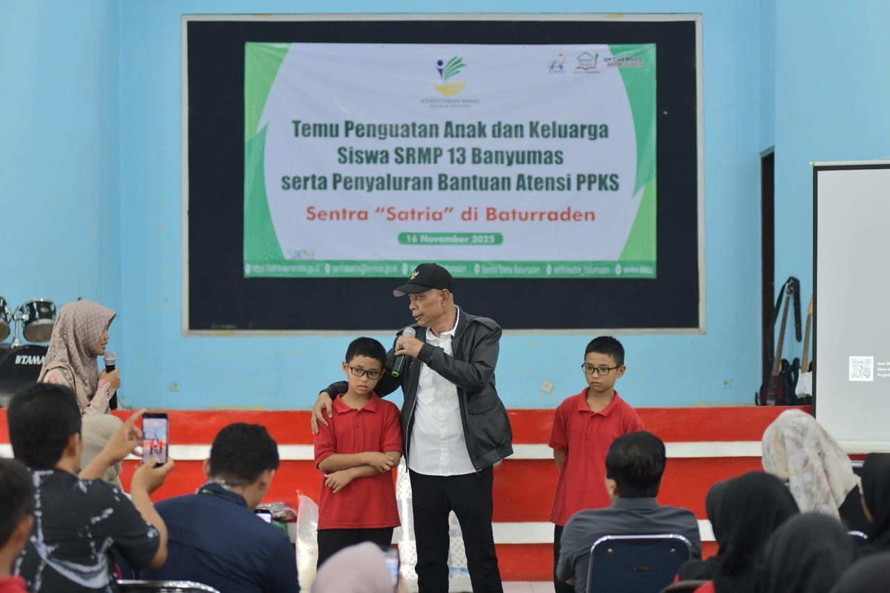 “Kalian harus disiplin, sayangi orang tua, hormati guru,” kata Wamensos Agus Jabo kepada para siswa Sekolah Rakyat Menengah Pertama (SRMP) 13 Banyumas di Sentra Satria, Baturaden, Banyumas, Minggu (16/11/2025).