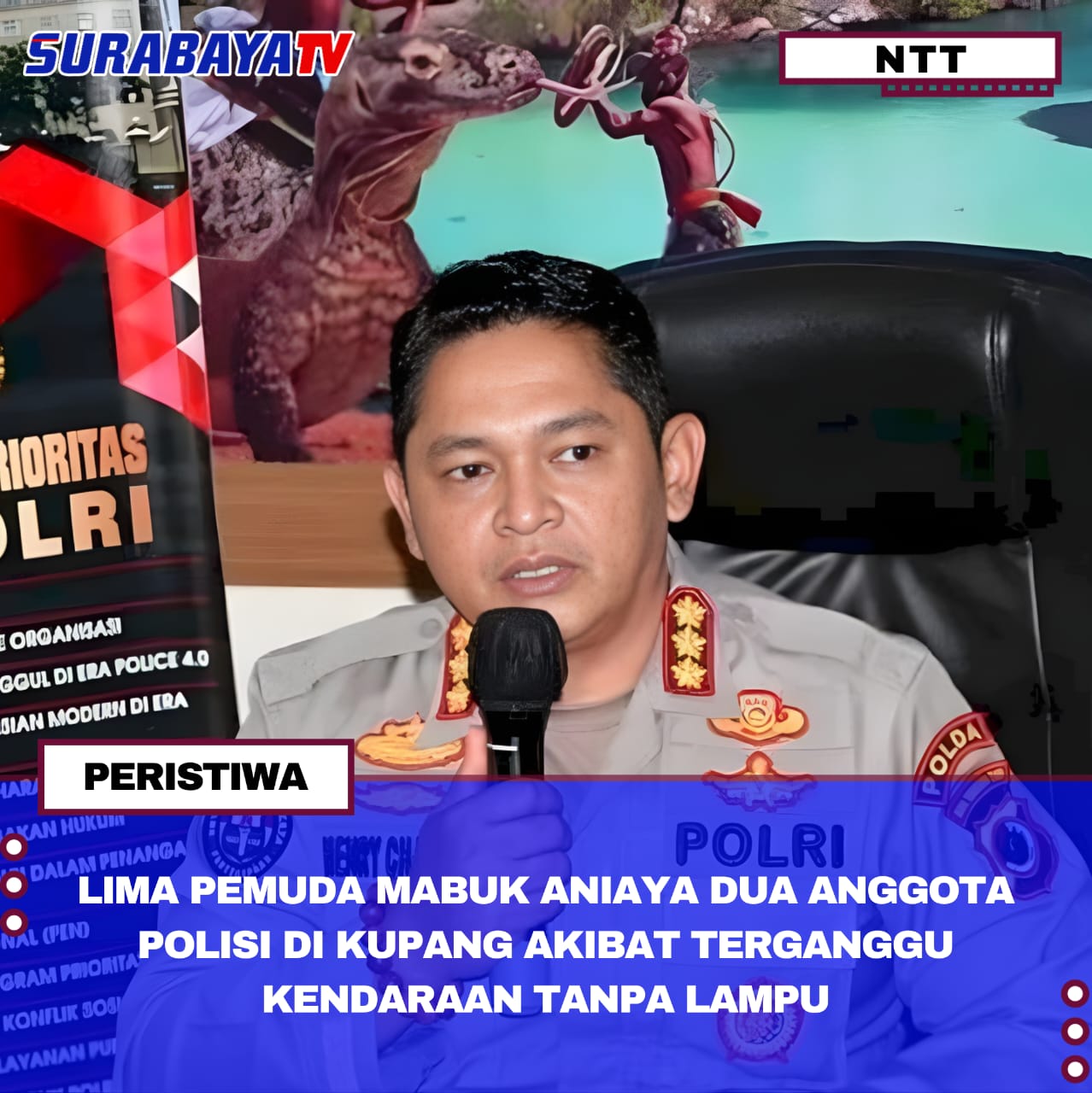 Jakarta – Lima pemuda di Kota Kupang ditetapkan sebagai tersangka dan ditahan setelah menganiaya dua anggota polisi Polda Nusa Tenggara Timur (NTT) di Jalan Adisucipto, Kelurahan Penfui, Minggu (23/11/2025) malam. Kasus ini terjadi ketika korban, Brigpol HL dan Bripda PA, melintasi kawasan Pasar Penfui dan berpapasan dengan tiga pemuda yang mengendarai sepeda motor tanpa lampu utama. “Karena hampir menabrak kendaraan korban, Brigpol HL berteriak spontan. Namun teriakan itu dibalas dengan makian oleh para pelaku,” jelas Kombes Pol Henry Novika Candra, Kabidhumas Polda NTT.