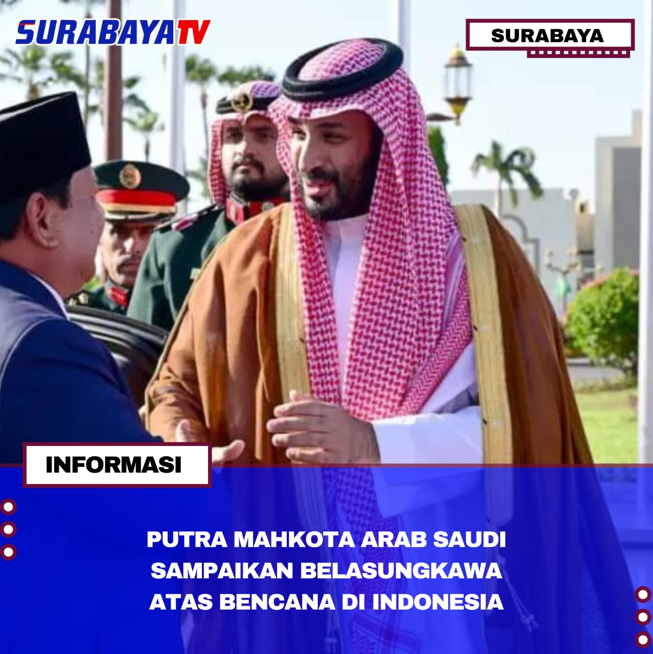 Surabaya – Putra Mahkota Arab Saudi, Pangeran Mohammed bin Salman, menyampaikan belasungkawa atas bencana banjir dan tanah longsor yang melanda Indonesia. Ia menegaskan bahwa “Kerajaan Arab Saudi menyampaikan belasungkawa yang mendalam dan simpati yang tulus kepada Presiden Indonesia Prabowo Subianto dan seluruh keluarga korban,” seraya mendoakan keselamatan dan pemulihan para korban.