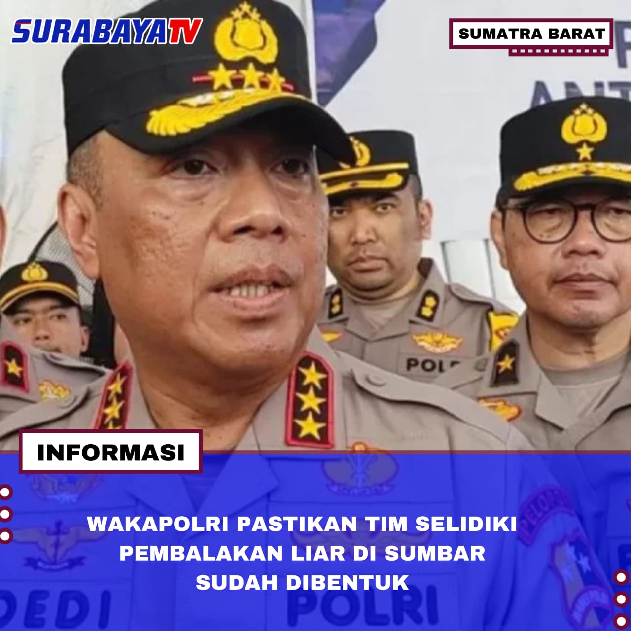 Sumatra Barat – Wakapolri Komjen Dedi Prasetyo memastikan tim gabungan untuk menyelidiki dugaan penebangan liar di Sumbar sudah resmi dibentuk. Ia menegaskan, “Bareskrim sudah membentuk tim, nanti akan berkolaborasi dengan Polda Sumbar,” saat meninjau Posko Ante Mortem di RS Bhayangkara Padang.
