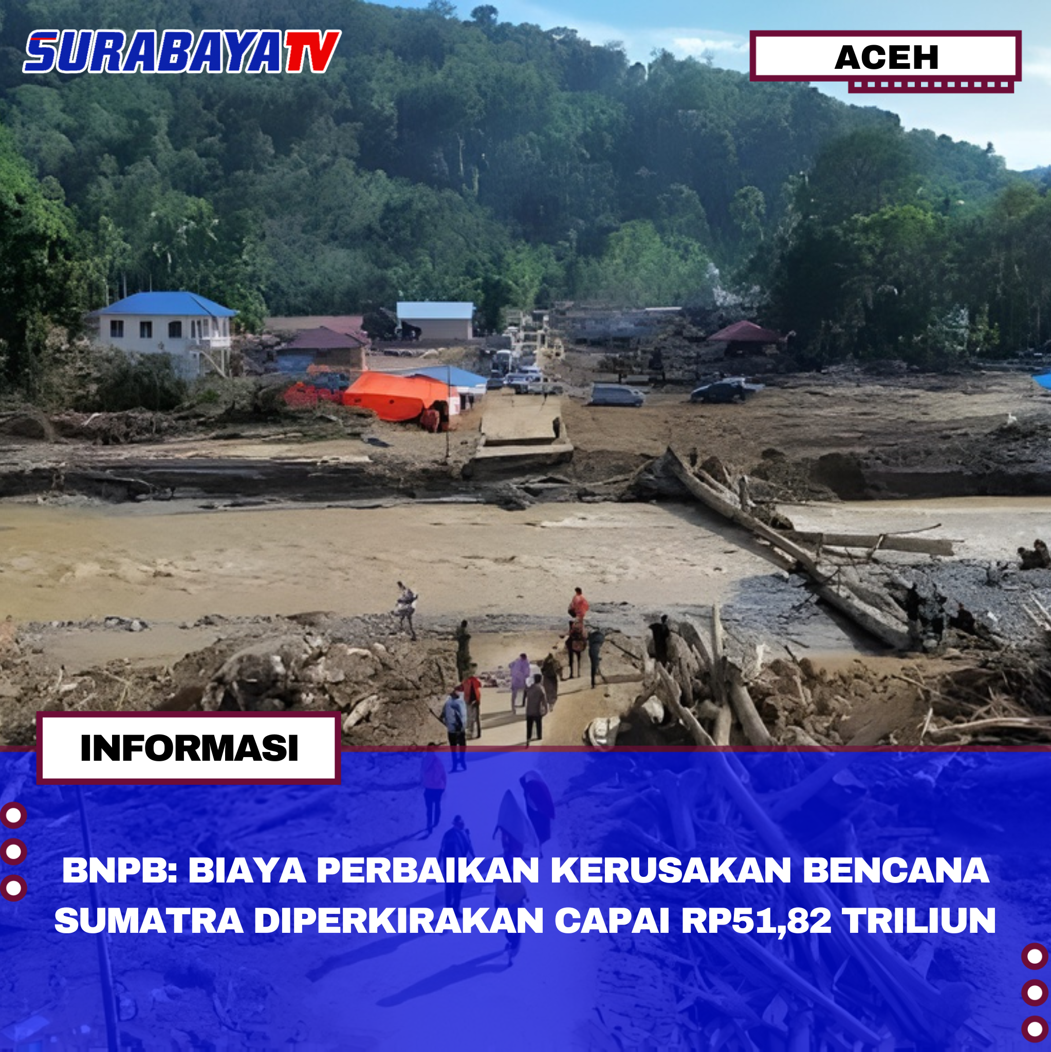 Aceh – Badan Nasional Penanggulangan Bencana (BNPB) melaporkan perkiraan biaya untuk memperbaiki kerusakan akibat banjir bandang dan longsor di tiga provinsi Sumatra mencapai Rp51,82 triliun. Angka tersebut disampaikan Kepala BNPB Letjen TNI Suharyanto kepada Presiden Prabowo Subianto dalam rapat koordinasi di Aceh Besar pada Minggu (7/12) malam, dan kemungkinan masih akan bertambah seiring pendataan yang terus berlangsung. Rincian biaya per provinsi adalah Aceh Rp25,41 triliun, Sumatra Utara Rp12,88 triliun, dan Sumatra Barat Rp13,52 triliun.
