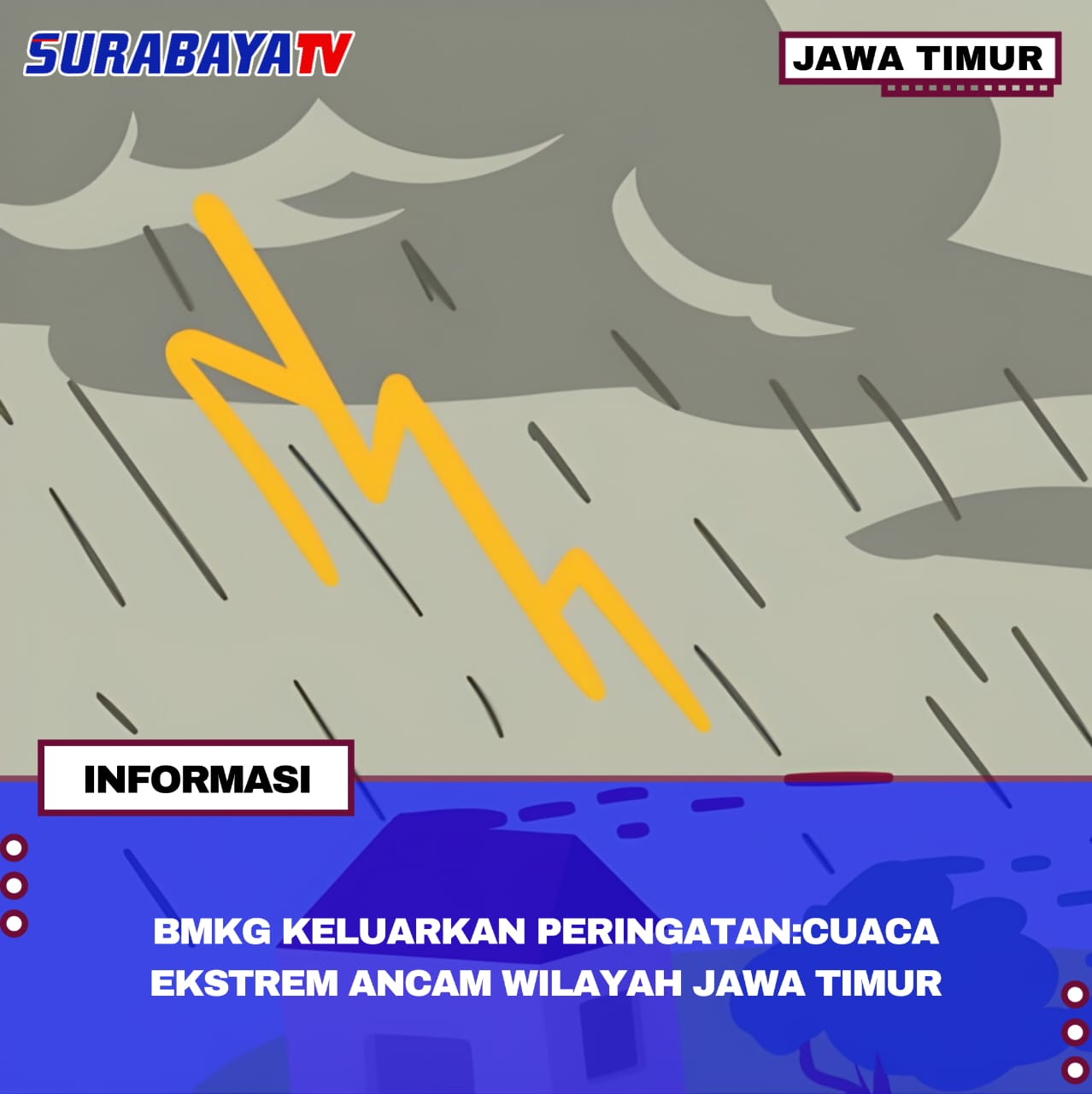 Jawa Timur – Berdasarkan prakiraan BMKG, sebagian besar wilayah Jawa Timur berpotensi mengalami hujan ringan hingga deras yang disertai petir pada hari ini, Senin (15/12/2025). Hujan deras disertai petir diperkirakan terjadi di wilayah seperti Banyuwangi, Blitar, Bondowoso, Kota Malang, Probolinggo, Magetan, dan Pasuruan. Sementara itu, hujan ringan diprakirakan mengguyur banyak wilayah lainnya, termasuk Surabaya, Malang, Kediri, Mojokerto, dan Madura.