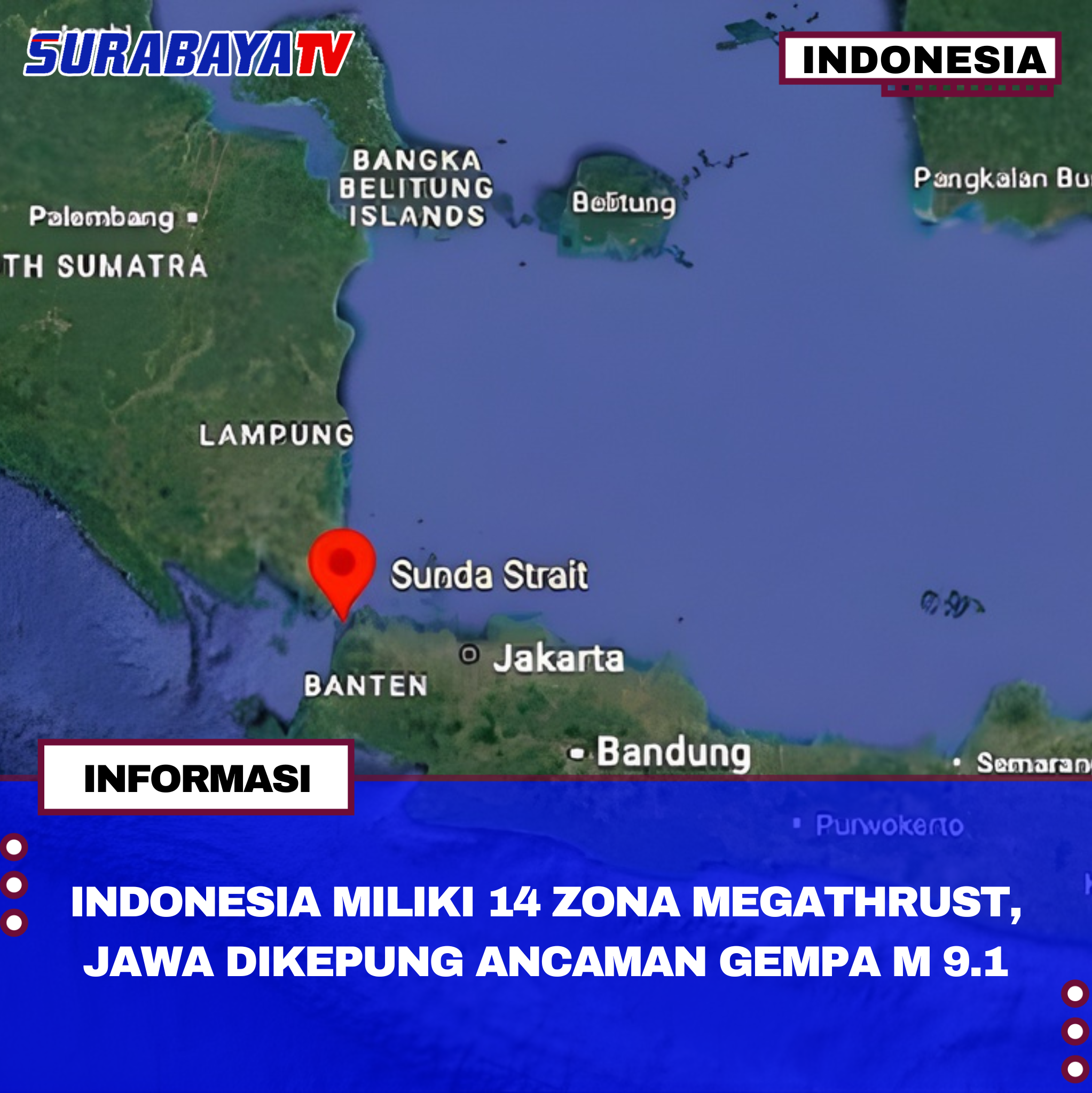 Indonesia – Peta Sumber dan Bahaya Gempa Indonesia terbaru tahun 2024 mengungkap bahwa Indonesia dikelilingi oleh 14 zona megathrust, naik satu zona dari pemetaan sebelumnya pada 2017. Pulau Jawa, pulau dengan populasi terpadat, secara khusus dikepung oleh tiga zona raksasa ini. Ketiganya memiliki potensi melepaskan energi gempa dengan kekuatan sangat besar, yaitu Zona Megathrust Jawa (M 9.1), Zona Jawa Bagian Barat (M 8.9), dan Zona Jawa Bagian Timur (M 8.9), yang juga berpotensi memicu tsunami.