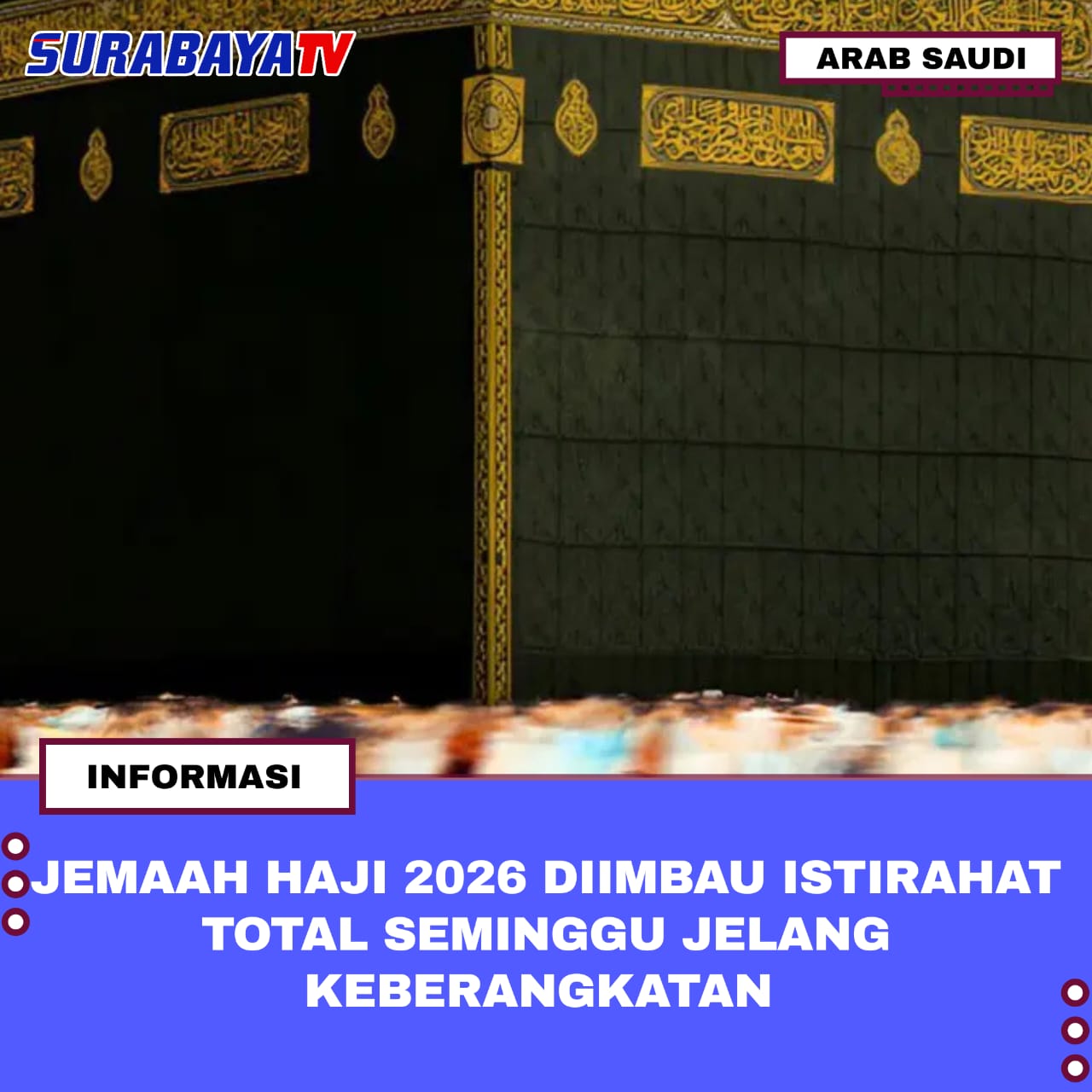 Arab Saudi—Calon jemaah haji Indonesia 2026 diimbau untuk benar-benar beristirahat total sejak seminggu sebelum keberangkatan. Kementerian Kesehatan mengingatkan agar tradisi walimatus safar atau acara syukuran pelepasan haji dibatasi, agar energi jemaah tidak terkuras sebelum berangkat ke Tanah Suci.