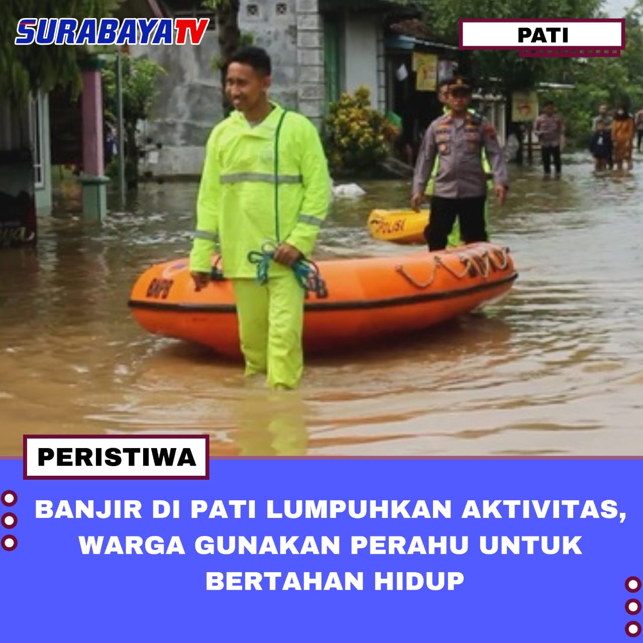 Pati – Banjir yang melanda Desa Mustokoharjo, Kecamatan Pati, Kabupaten Pati, Jawa Tengah, sudah berlangsung hampir sepekan dan belum menunjukkan tanda-tanda surut. Genangan air akibat meluapnya Sungai Silugonggo itu mencapai hingga 1 meter di pekarangan dan sekitar 75 sentimeter di dalam rumah warga sehingga aktivitas sehari-hari terhambat dan kendaraan tak bisa melintas. Akibatnya warga terpaksa menggunakan perahu untuk beraktivitas seperti mencari makan atau memenuhi kebutuhan lainnya.