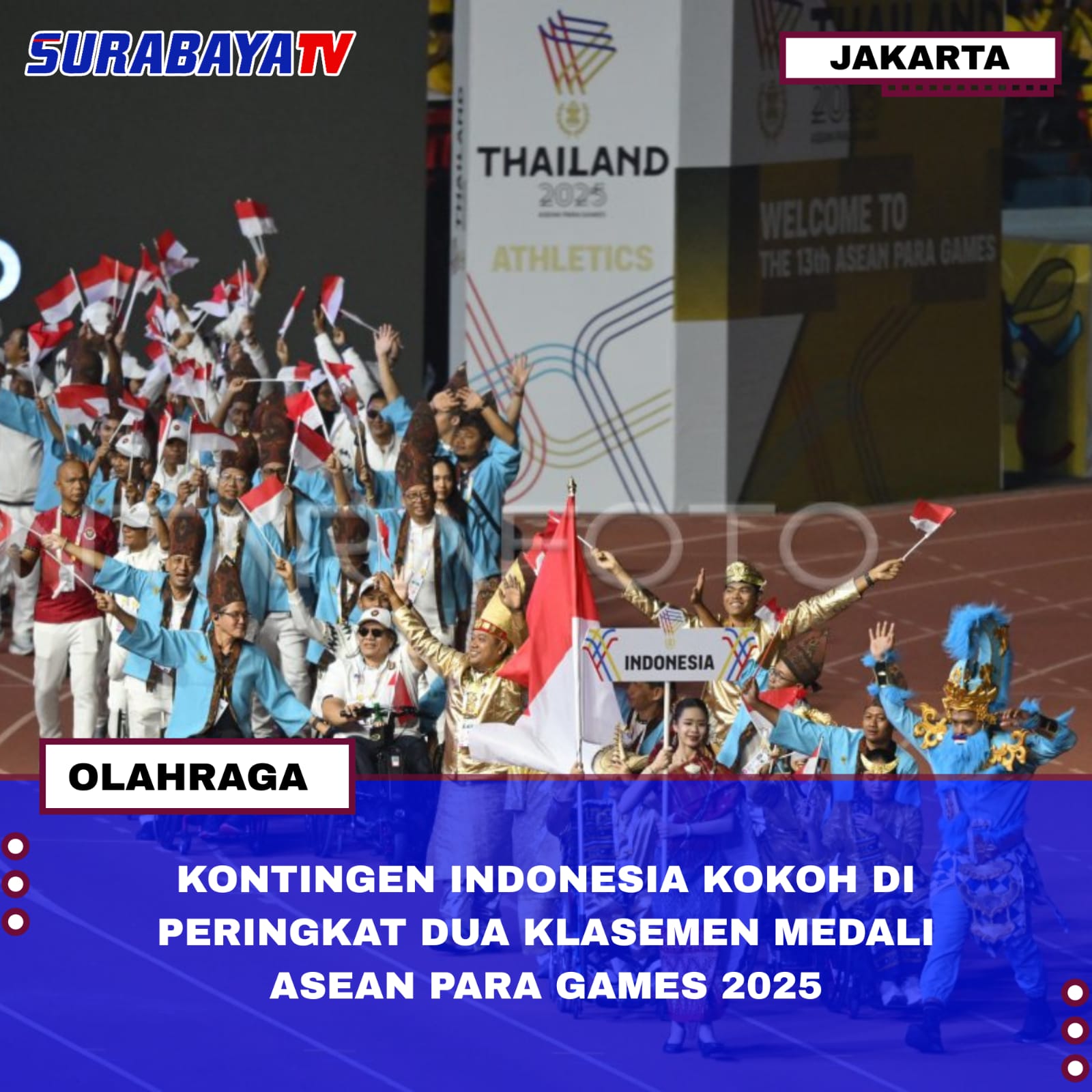 Jakarta – Kontingen Indonesia menunjukkan performa yang impresif dalam perolehan medali pada ajang ASEAN Para Games 2025 yang berlangsung di Nakhon Ratchasima, Thailand. Hingga Jumat (23/1) malam, Indonesia berhasil meraih 68 medali emas, 73 medali perak, dan 70 medali perunggu, sehingga menempatkan tim Merah Putih di peringkat kedua klasemen medali sementara di bawah tuan rumah Thailand. Prestasi ini memperlihatkan konsistensi Indonesia di arena olahraga difabel terbesar se-Asia Tenggara tersebut.