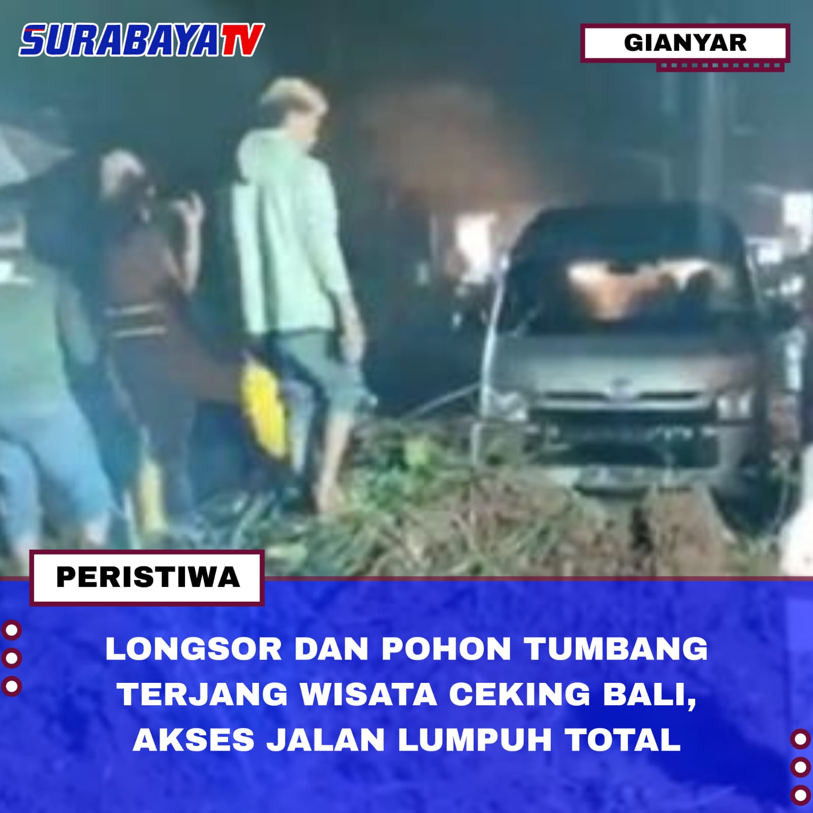 Gianyar – Peristiwa tanah longsor dan pohon tumbang melanda kawasan objek wisata Ceking, Kecamatan Tegallalang, Kabupaten Gianyar, Bali, pada Rabu (28/1) sore. Insiden yang terjadi sekitar pukul 17.30 WITA ini mengakibatkan akses jalan utama tertutup total oleh material tanah serta merusak sejumlah kendaraan yang sedang terparkir di sekitar lokasi. Meski dampak kerusakan materiil cukup signifikan, pihak kepolisian memastikan tidak ada korban jiwa dalam musibah tersebut.