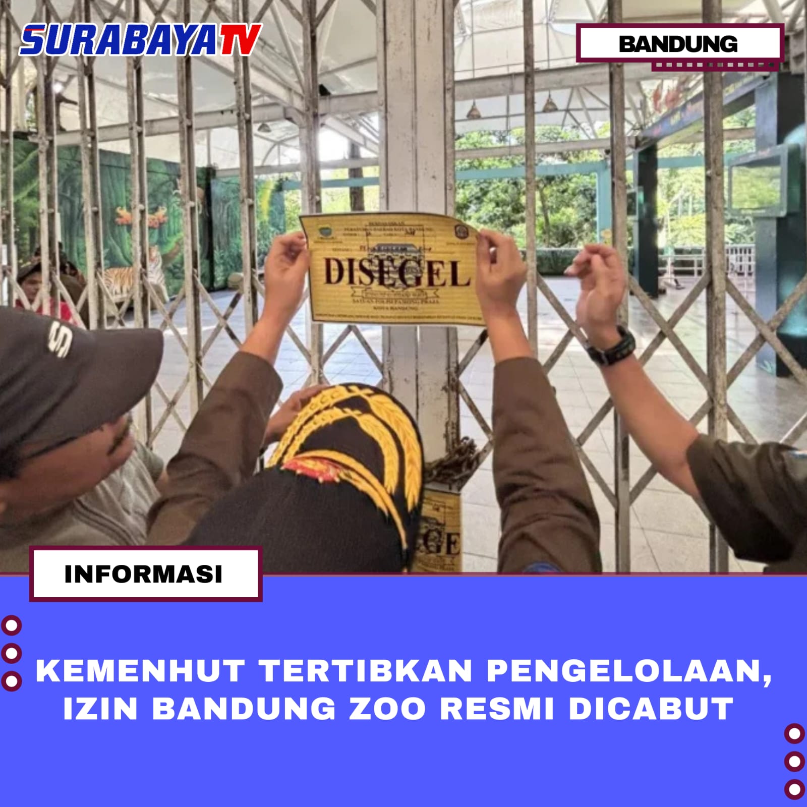 Bandung—Kementerian Kehutanan resmi mencabut izin Lembaga Konservasi Yayasan Margasatwa Tamansari yang selama ini mengelola Kebun Binatang Bandung atau Bandung Zoo. Langkah ini diambil sebagai bagian dari upaya penyelamatan satwa dan penataan pengelolaan kawasan kebun binatang tersebut.