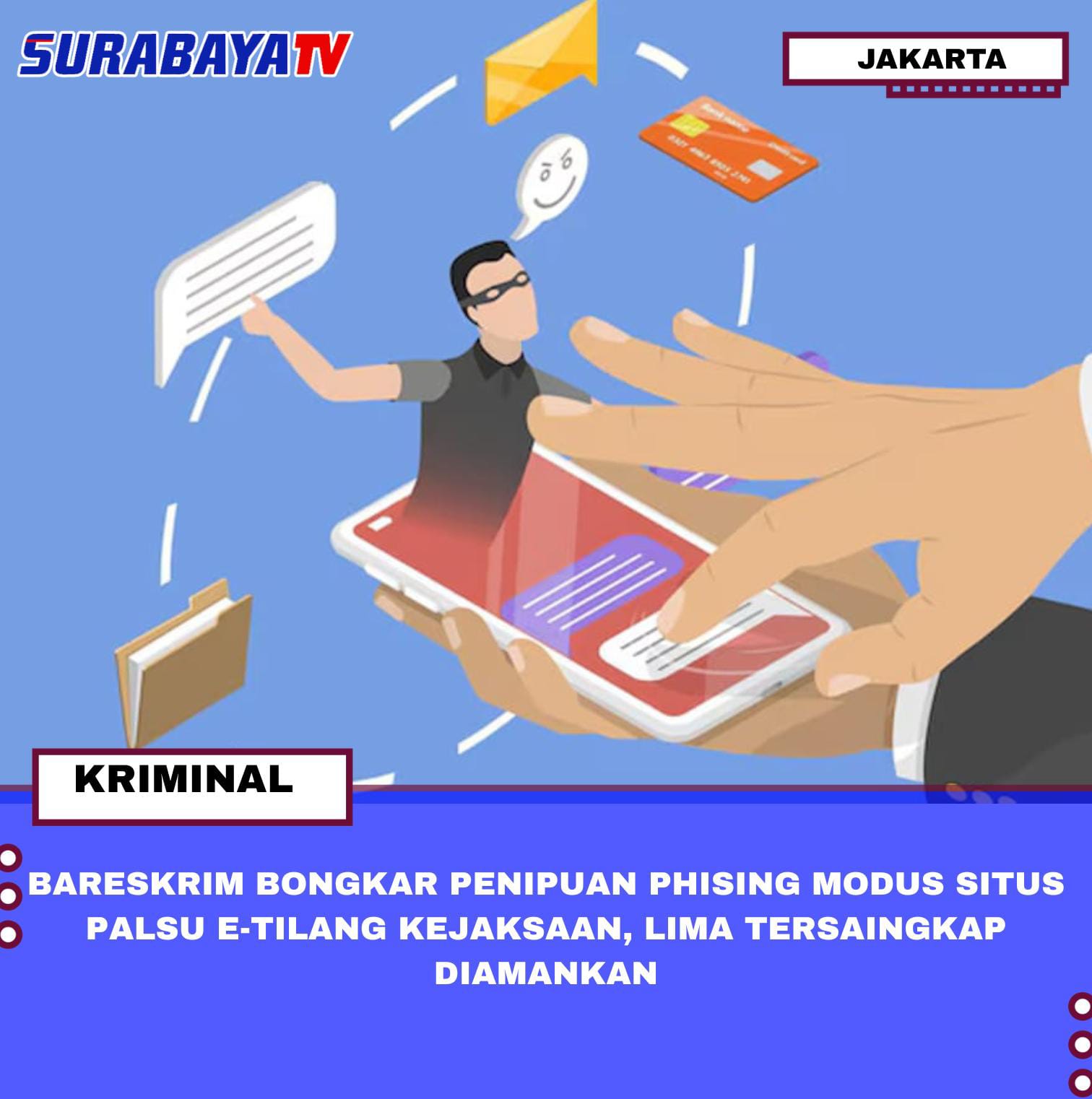 Jakarta – Direktorat Tindak Pidana Siber Bareskrim Polri membongkar praktik penipuan daring bermodus phishing yang menyamar sebagai situs resmi pembayaran e-tilang milik Kejaksaan Agung. Lima orang tersangka diamankan dari dua wilayah berbeda dalam pengungkapan kasus yang bermula dari laporan masyarakat yang menerima SMS berisi tagihan denda pelanggaran lalu lintas disertai tautan palsu. “Korban diarahkan ke website palsu yang tampilannya sangat mirip dengan situs resmi. Karena percaya, korban memasukkan data pribadi dan kartu kreditnya,” ujar Direktur Tindak Pidana Siber Bareskrim Polri Brigjen Pol Himawan Bayu Aji di Mabes Polri, Rabu (25/2/2026).