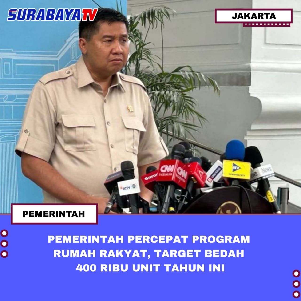 “Barusan kami rapat bersama Bapak Presiden dan dukungan yang luar biasa dari Bapak Presiden Prabowo untuk perumahan rakyat. Satu di antaranya ada langkah strategis untuk peningkatan bedah rumah, bedah rumah rakyat. Sedang dipersiapkan bersama dengan Menteri Keuangan dan Bapak Mensesneg dan Pak Seskab untuk renovasi rumah rakyat di seluruh Indonesia,” ujarnya.
