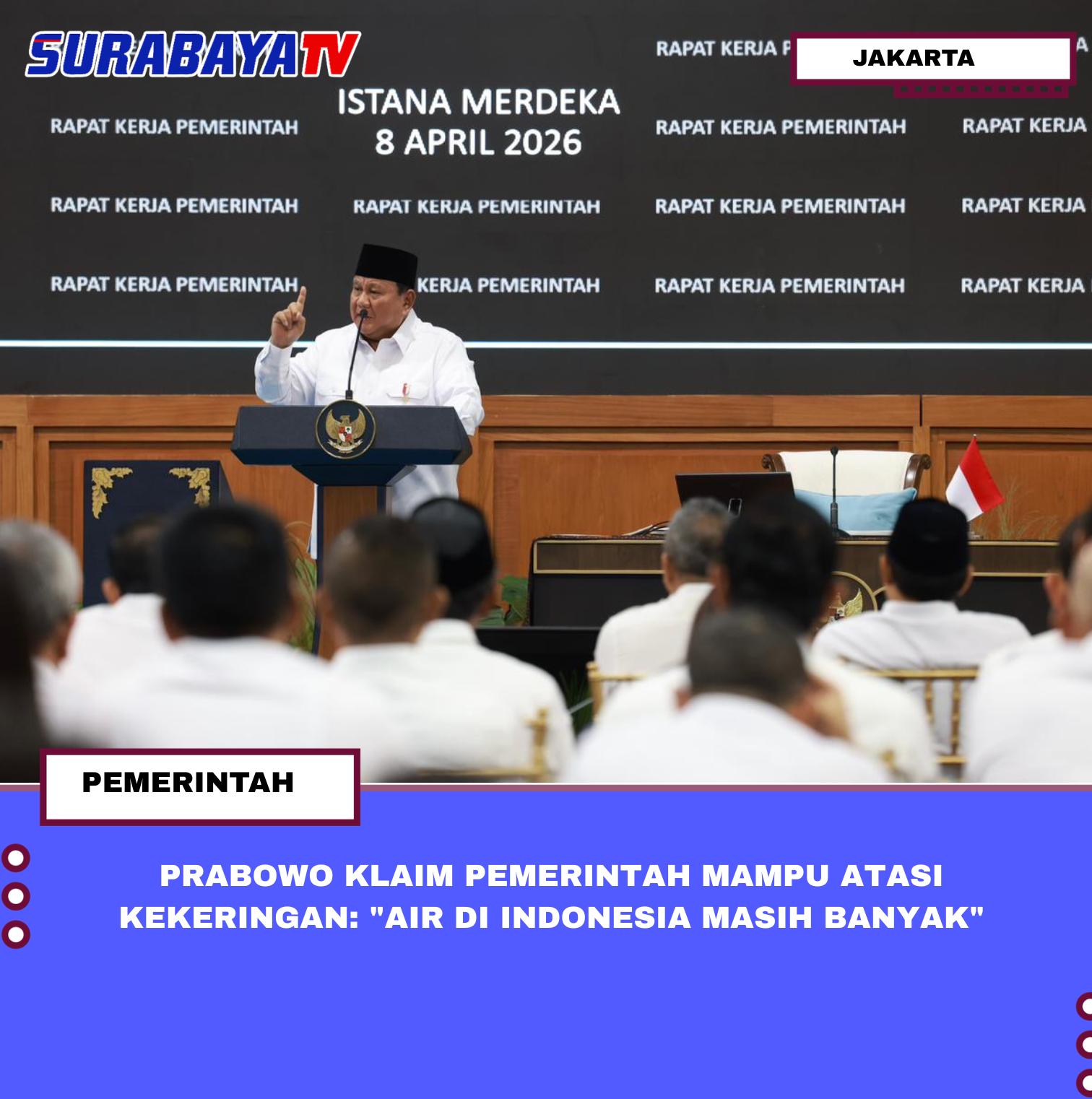 JAKARTA – Presiden Prabowo Subianto mengklaim pemerintah Indonesia mampu mengatasi kekeringan karena masih banyaknya wilayah Nusantara yang kelebihan air. Ia menilai persoalan air tergantung pada bagaimana pemerintah pusat dan daerah mengelolanya. “Karena kadang-kadang kita sendiri yang tidak dapat menjaga alam kita. Hutan kita babat. Hutan, pohon-pohon di gunung kita babat. Akhirnya air tidak dapat ditahan terjadi kekeringan tapi hal-hal ini dapat kita atasi,” ujar Prabowo di Istana Presiden, Rabu (8/4/2026).Presiden mencontohkan Bogor dengan curah hujan tinggi dan menyebut masyarakat Indonesia harus bersyukur dengan limpahan air yang diberikan Tuhan. “Di bagian-bagian tertentu negara kita, Indonesia Timur, pulau-pulau tertentu masih ada kesulitan air. Tapi kita dapat mengatasi karena airnya ada. Tinggal mampu atau tidak kita mendapatkannya dan menjaganya,” imbuhnya. Indonesia sempat diterpa La Nina Lemah dari Oktober 2025 hingga Februari 2026, sehingga awal musim kemarau diprediksi datang lebih awal dengan puncaknya pada Agustus 2026.Sementara itu, Wakil Gubernur Jawa Timur Emil Elestianto Dardak menyebut lima daerah yang menjadi fokus mengantisipasi kekeringan dan menjaga produksi pangan, yaitu Kabupaten Banyuwangi, Lamongan, Ngawi, Ponorogo, dan Madiun. Emil menyatakan hampir semua wilayah memiliki potensi dampak kekeringan yang sama, sehingga diperlukan perhatian khusus terhadap daerah-daerah lumbung pangan selama musim kemarau. Pemerintah provinsi terus memitigasi dampak kekeringan dengan berbagai program dan koordinasi lintas sektor.
