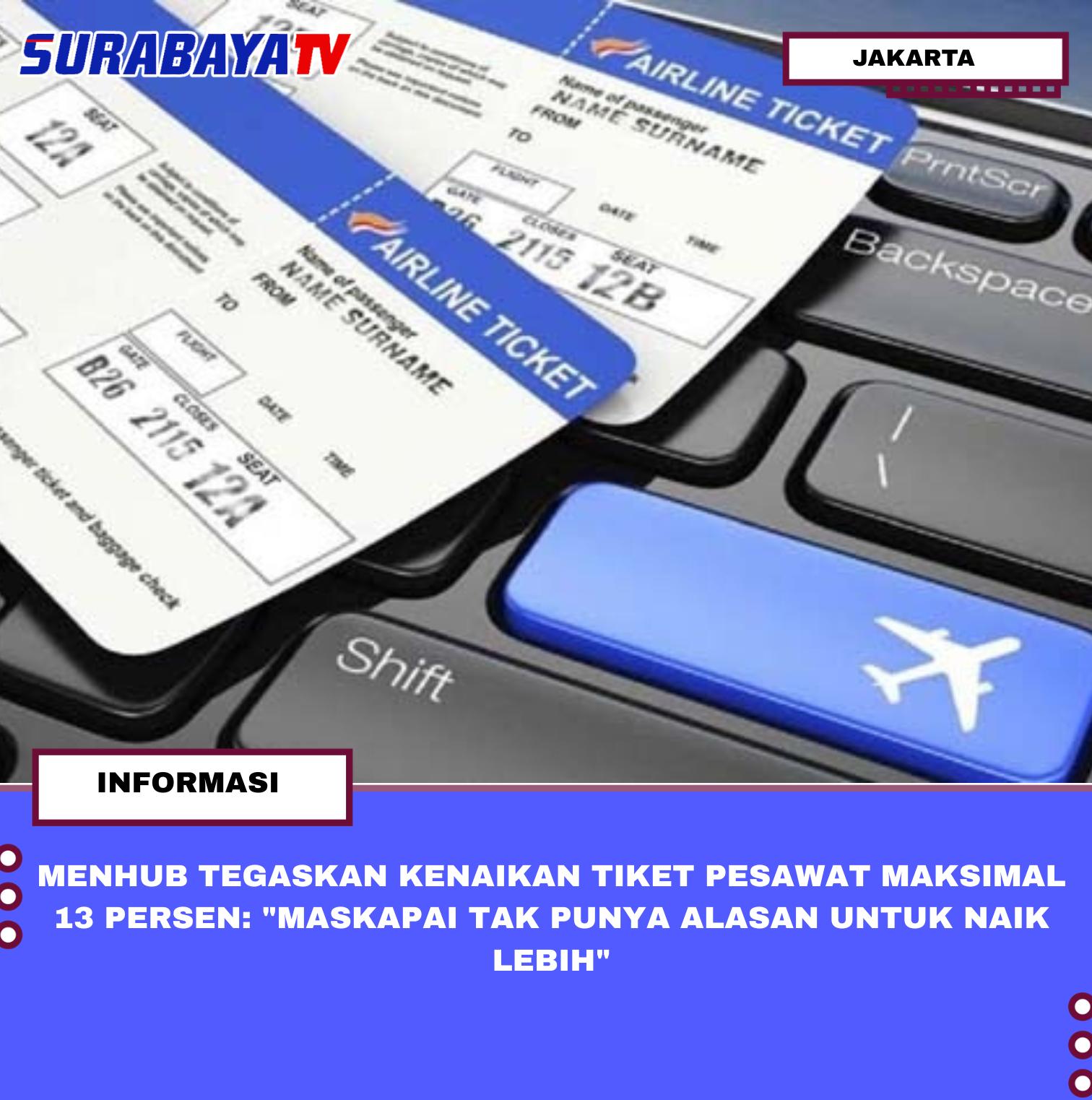 JAKARTA – Menteri Perhubungan Dudy Purwagandhi menegaskan kenaikan harga tiket pesawat oleh maskapai tidak boleh melebihi batas maksimal 13 persen sesuai kebijakan pemerintah. Dudy menjelaskan rentang kenaikan yang telah ditetapkan berada pada kisaran 9 hingga 13 persen, sehingga maskapai diharapkan mematuhi aturan tanpa mengambil keuntungan berlebihan. “Kita kan berharap sebagaimana kemarin sudah diumumkan bahwa range untuk kenaikan (harga tiket pesawat) itu adalah 9-13 persen. Nggak boleh lebih dari itu. Jadi mestinya penerbangan atau industri airline tidak punya alasan lagi untuk menambah kenaikan,” kata Menhub di Jakarta, Kamis (9/4/2026).Dudy memaparkan berbagai stimulus telah diberikan pemerintah untuk menekan biaya operasional maskapai, termasuk kebijakan PPN yang ditanggung pemerintah, penyesuaian fuel surcharge hingga 38 persen, serta pembebasan biaya suku cadang pesawat. Pemerintah telah melakukan perhitungan matang terkait struktur biaya industri penerbangan sehingga kenaikan wajar seharusnya tetap dalam kisaran 9-13 persen. Kementerian Perhubungan juga terus memantau implementasi kebijakan, dan selama periode Lebaran hampir tidak ada keluhan mengenai tiket pesawat.Pemerintah tidak mengatur tiket kelas bisnis karena segmen tersebut diserahkan sepenuhnya pada mekanisme pasar. Kebijakan penyesuaian fuel surcharge menjadi 38 persen (dari sebelumnya 10 persen untuk pesawat jet dan 25 persen untuk propeller) merupakan langkah mitigasi strategis menghadapi kenaikan harga avtur akibat lonjakan harga minyak mentah dunia pasca dinamika geopolitik di Timur Tengah. Menhub menegaskan pemerintah menjaga keseimbangan antara melindungi daya beli masyarakat dan memastikan keberlanjutan industri penerbangan nasional tetap sehat serta berdaya saing.