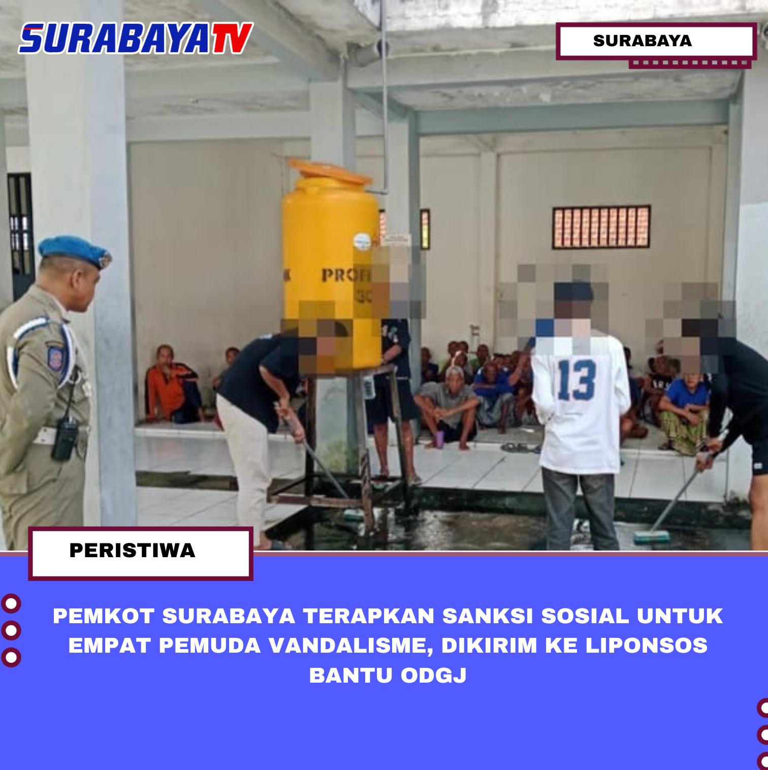 SURABAYA – Pemerintah Kota Surabaya menerapkan sanksi sosial terhadap empat pemuda pelaku vandalisme sebagai upaya memberikan efek jera sekaligus membangun kesadaran sosial di kalangan remaja. Keempat pelaku berinisial MRA (20), DRY (21), NRF (20), dan ABA (20) tersebut diamankan setelah diduga melakukan perusakan fasilitas dan estetika kota di kawasan Viaduk Gubeng pada Minggu (12/4/2026). Sebagai bentuk pembinaan, mereka kini menjalani sanksi sosial di Lingkungan Pondok Sosial (Liponsos) Keputih untuk membantu aktivitas perawatan dan pelayanan terhadap Orang Dalam Gangguan Jiwa (ODGJ).Kepala Satpol PP Kota Surabaya Achmad Zaini menyatakan langkah tersebut diambil agar para pelaku tidak hanya menerima hukuman, tetapi juga memahami dampak sosial dari tindakan mereka. “Iya, anak-anak tersebut sudah kami tempatkan di Liponsos. Aksi sosialnya berupa membantu bersih-bersih dan melayani teman-teman ODGJ yang sedang menjalani perawatan di sana,” ujar Zaini, Senin (13/4/2026). Selain sanksi sosial, para pelaku juga diwajibkan membuat surat pernyataan tidak mengulangi perbuatan mereka.Pemerintah Kota Surabaya turut melakukan pemantauan melalui kamera pengawas (CCTV) di sejumlah titik strategis. Usai menjalani pembinaan di Liponsos, keempat pelaku diperbolehkan kembali ke rumah masing-masing dengan syarat adanya penjaminan dari pihak keluarga. Zaini mengimbau partisipasi masyarakat untuk memberikan informasi dan menegaskan bahwa tim patroli lintas instansi rutin bergerak setiap hari untuk mencegah aksi vandalisme di wilayah kota.